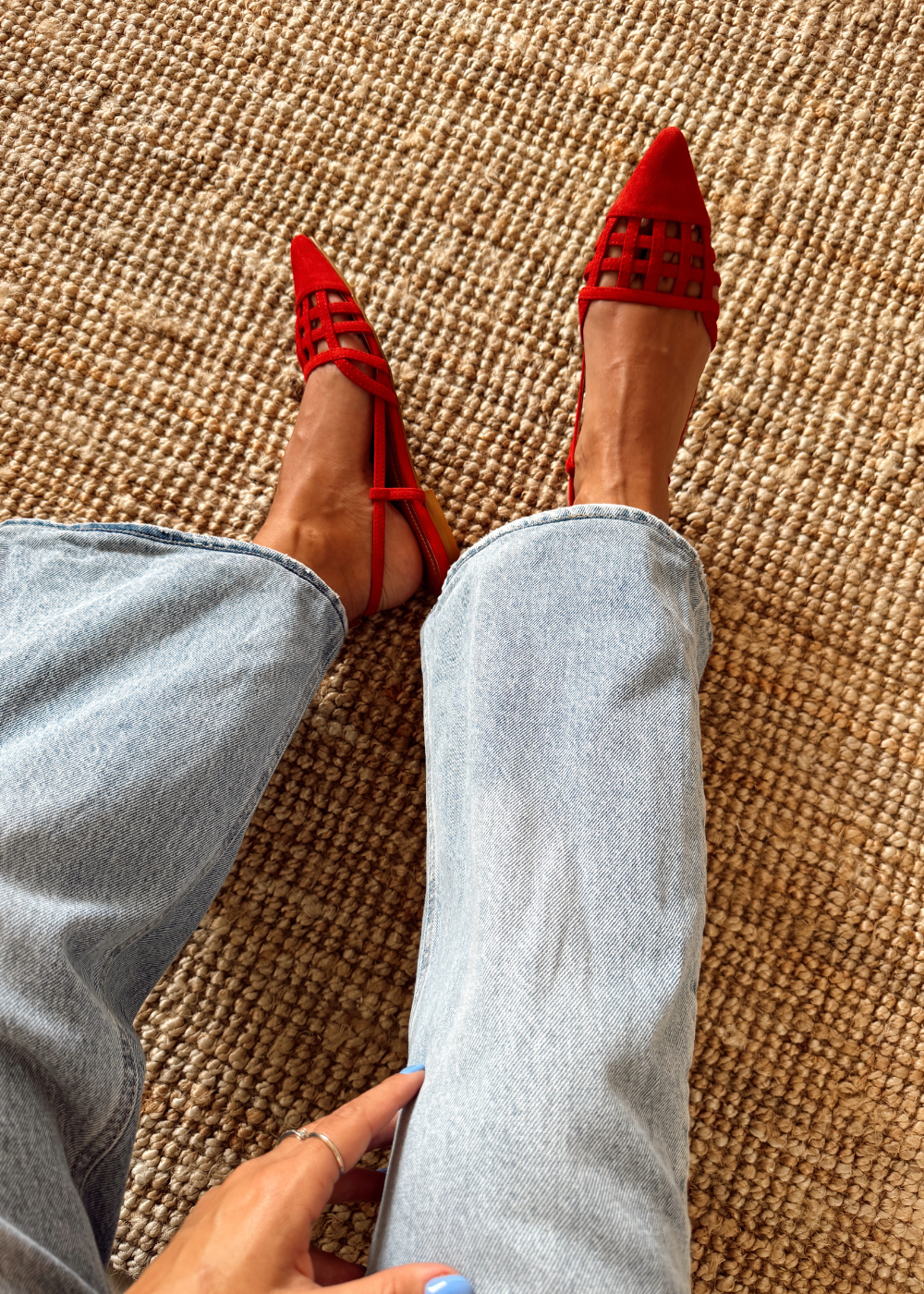 Fabricados en cuero con correa en los laterales con hebilla para graduar, tacón de 1 cm.