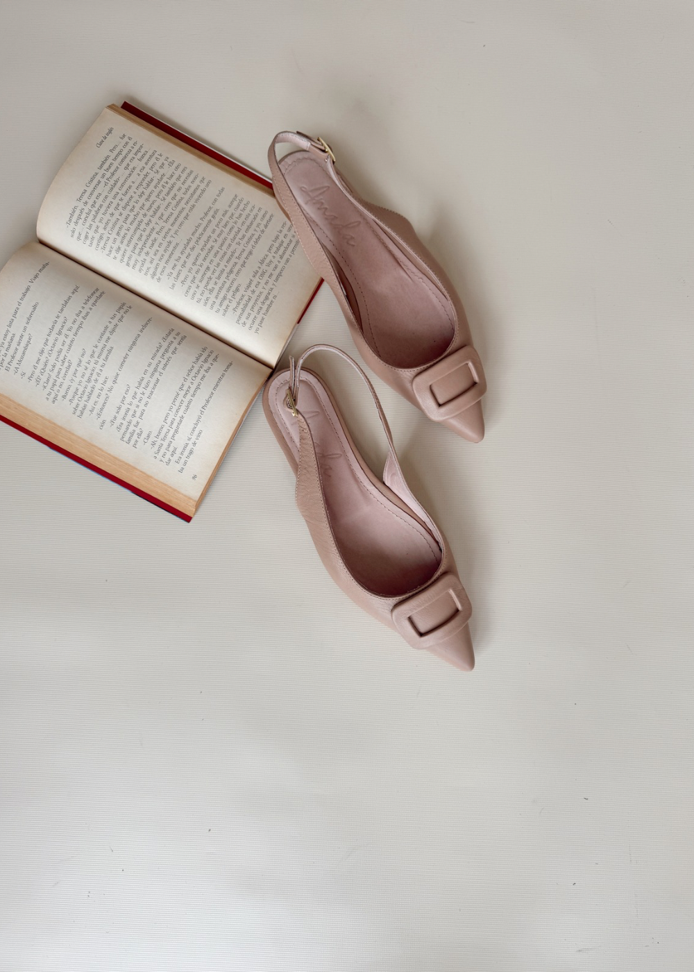 Fabricados en cuero con herraje cuadrado sobre la capellada en el mismo cuero tacón de 1 cm terminación delantera en punta correa de amare en el talón con hebilla que permite graduar.