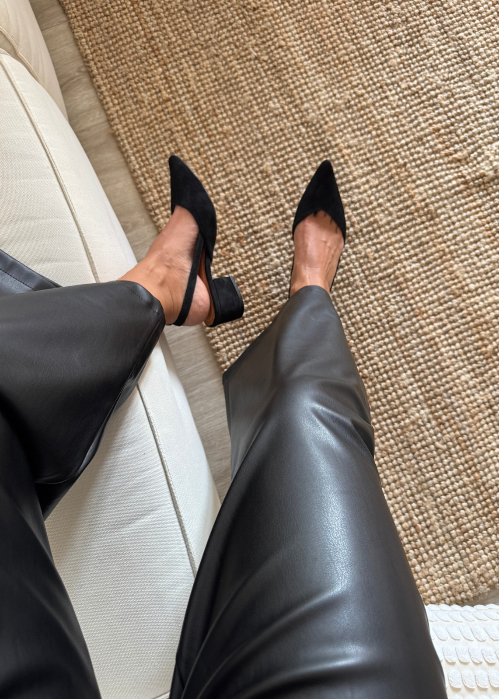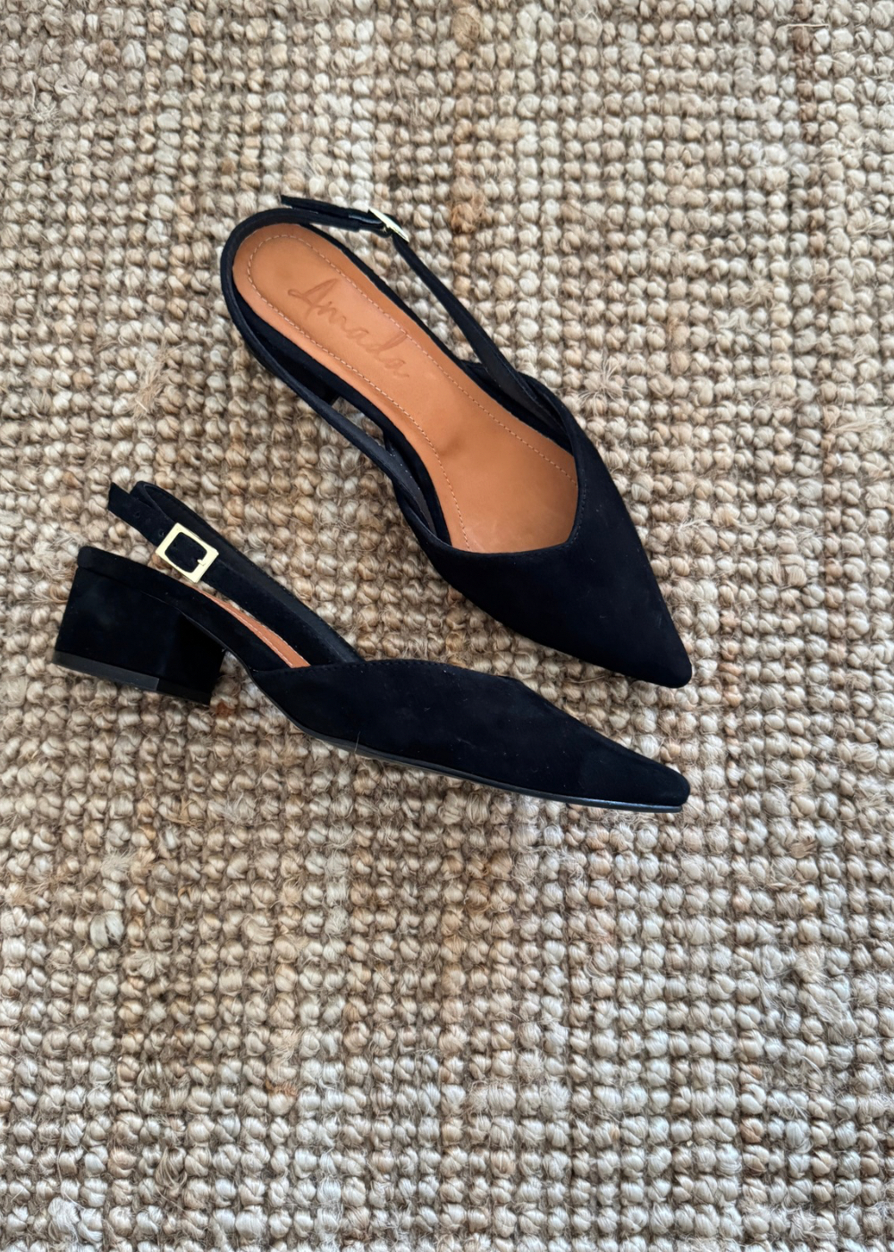 Tacón fabricado en cuero, tacón de 3 cm y medio correa en talón con hebilla para graduar.
